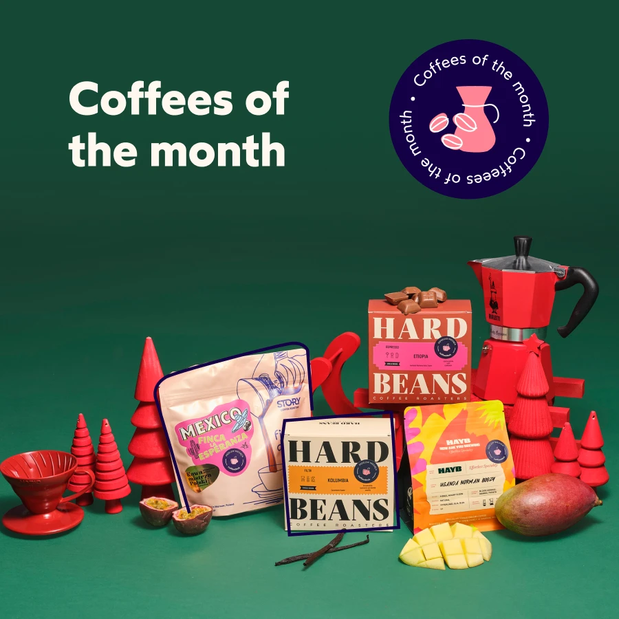 Whole-bean specialty coffee from Columbia roasted by Hard Beans from Poland.Light roast, perfect for filter coffee machines, drippers, Chemex, AeroPress, French Press, and other pour-over brewing methods. The flavour of the brew brings the notes of peach, red currant and vanillia. Country: ColumbiaRegion: Pitalito, HuilaFarm: Finca Las Flores & Finca El DivisoVarietal: Tabi & Yellow ColombiaProcessing: Dual Fermentation Washed ProcessAltitude:1800 m n.p.m.Cupping score: 86,25 / 100ABOUT THE COFFEEThis coffee comes from two farms in the Huila region: Finca El Diviso, run by Nestor Lasso and his family, and Finca Las Flores, managed by Johan Vergara and the Vergara family. El Diviso sits at an elevation of 1,780–1,900 m a.s.l., while Las Flores is located at 1,700–1,790 m a.s.l. Both farms focus on experimental processing methods and cultivate a wide range of botanical varieties.This lot is a blend of the Tabi and Yellow Colombia varieties. The coffee undergoes double fermentation: first an aerobic stage, followed by anaerobic submerged fermentation aimed at enhancing stone-fruit notes. After fermentation, the coffee is subjected to a “thermal shock” using hot and cold water to minimize aroma loss and preserve the desired sensory profile. Drying begins naturally under cover, after which the coffee is finished mechanically in a silo. It then rests for at least 10 days before final milling.Coffees from Las Flores and El Diviso regularly appear in winning routines at Barista Championships—on the World Barista Championship stage (including the 2025 World Barista Champion) as well as in the Polish Barista Championship—further confirming their exceptional potential.ROASTER’S NOTENestor Lasso and Johan Vergara are pioneers of the new wave of Colombian coffee producers. Both farms (El Diviso and Las Flores) are truly impressive, and although I have visited them several times, each visit brought new solutions and innovations. When the result of their collaboration—Carambolo Estate—appeared on our cupping table, it was immediately clear that these beans would become this year’s filter coffee of December. No need to elaborate: it’s going to be fruity and sweet!COFFEE OF THE MONTHEvery month we pick two coffee specials – one for the espresso lovers, and the other for the pour-over sippers. Working directly with the roasteries, we deliver freshly roasted, unique coffee beans – always of the highest quality, at the lowest price you can get. What you get is also a thorough review, description, origin, and brewing guide.The aim of the project is to get you acquainted with speciality coffees and various flavours they offer. Check out the coffees of this month!